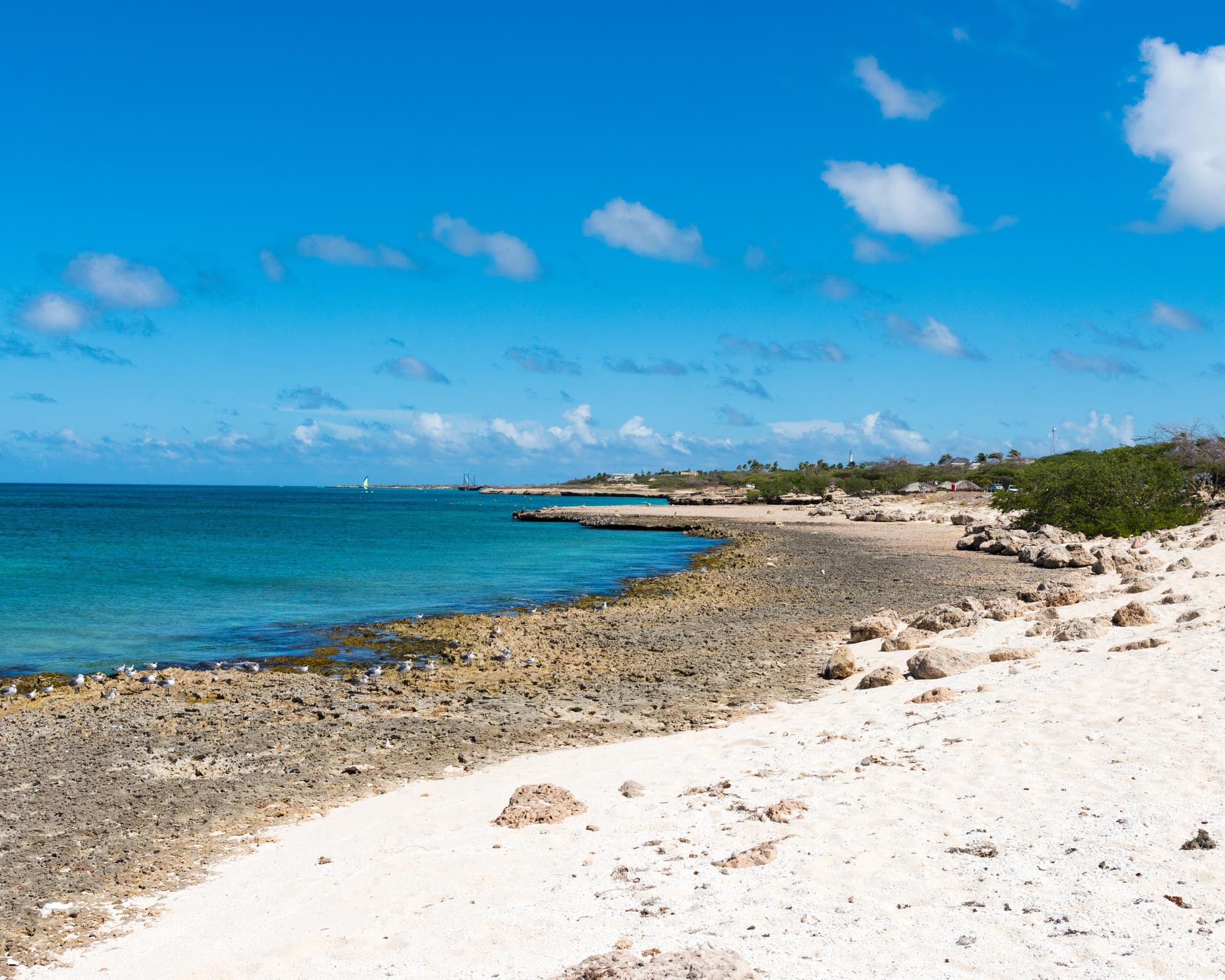 Willkommen in Malmok, einem verborgenen Juwel auf der sonnenverwöhnten Insel Aruba, wo unberührte Strände auf das funkelnde Türkis der Karibik treffen. Bekannt für seinen ruhigen Charme und seine natürliche Schönheit ist Malmok ein ideales Reiseziel für alle, die sowohl Entspannung als auch Abenteuer suchen. Die Gegend ist berühmt für ihre atemberaubende Küstenlinie, an der felsige Kalksteinufer in kleine, abgelegene Sandbuchten übergehen. Diese Strände sind perfekt zum Sonnenbaden, Schwimmen und Schnorcheln und bieten eine ruhige Zuflucht fernab der belebteren Touristenorte der Insel. Malmok ist besonders bei Schnorchlern und Tauchern beliebt, dank seines reichen Meereslebens und des klaren, warmen Wassers. Das berühmte Schiffswrack, die Antilla, liegt nur wenige Meter vor der Küste und bietet ein faszinierendes Unterwasserabenteuer für alle, die gerne erkunden. Die lebendigen Korallenriffe und die vielfältige Meeresfauna machen jeden Tauchgang zu einem unvergesslichen Erlebnis. Für diejenigen, die lieber an der Oberfläche bleiben, bieten Kajakfahren und Stand-Up-Paddling eine einzigartige Perspektive auf dieses wunderschöne Küstengebiet. Abseits des Strandes gewährt Malmok seinen Besuchern einen Einblick in Arubas einzigartige Wüstenlandschaft. Der nahegelegene Arikok-Nationalpark ist ein absolutes Muss: Hier können Sie durch zerklüftetes Gelände wandern und die einheimische Flora und Fauna der Insel entdecken. Der Park beherbergt zudem uralte Höhlenmalereien und beeindruckende geologische Formationen. Wer es lieber gemütlich mag, kann ein Fahrrad mieten und eine malerische Fahrt entlang der Malmok Boardwalk unternehmen, die atemberaubende Ausblicke auf das Meer bietet und ein perfekter Ort ist, um einen spektakulären Sonnenuntergang zu erleben. Die Unterkünfte in Malmok reichen von luxuriösen Villen direkt am Strand bis hin zu charmanten Boutique-Hotels, sodass für jeden Reisetyp ein komfortabler Aufenthalt garantiert ist. Auch die Gastronomie ist vielfältig: Lokale Restaurants servieren traditionelle arubanische Gerichte ebenso wie internationale Küche. Ob Sie frische Meeresfrüchte genießen oder einen Cocktail in einer Strandbar schlürfen – die entspannte Atmosphäre und die freundlichen Einheimischen machen jede Mahlzeit zu einem unvergesslichen Erlebnis. In Malmok gehen die Tage nahtlos in Nächte mit sternenklarem Himmel und dem sanften Rauschen des Meeres über und versprechen einen wahrhaft idyllischen Karibikurlaub.