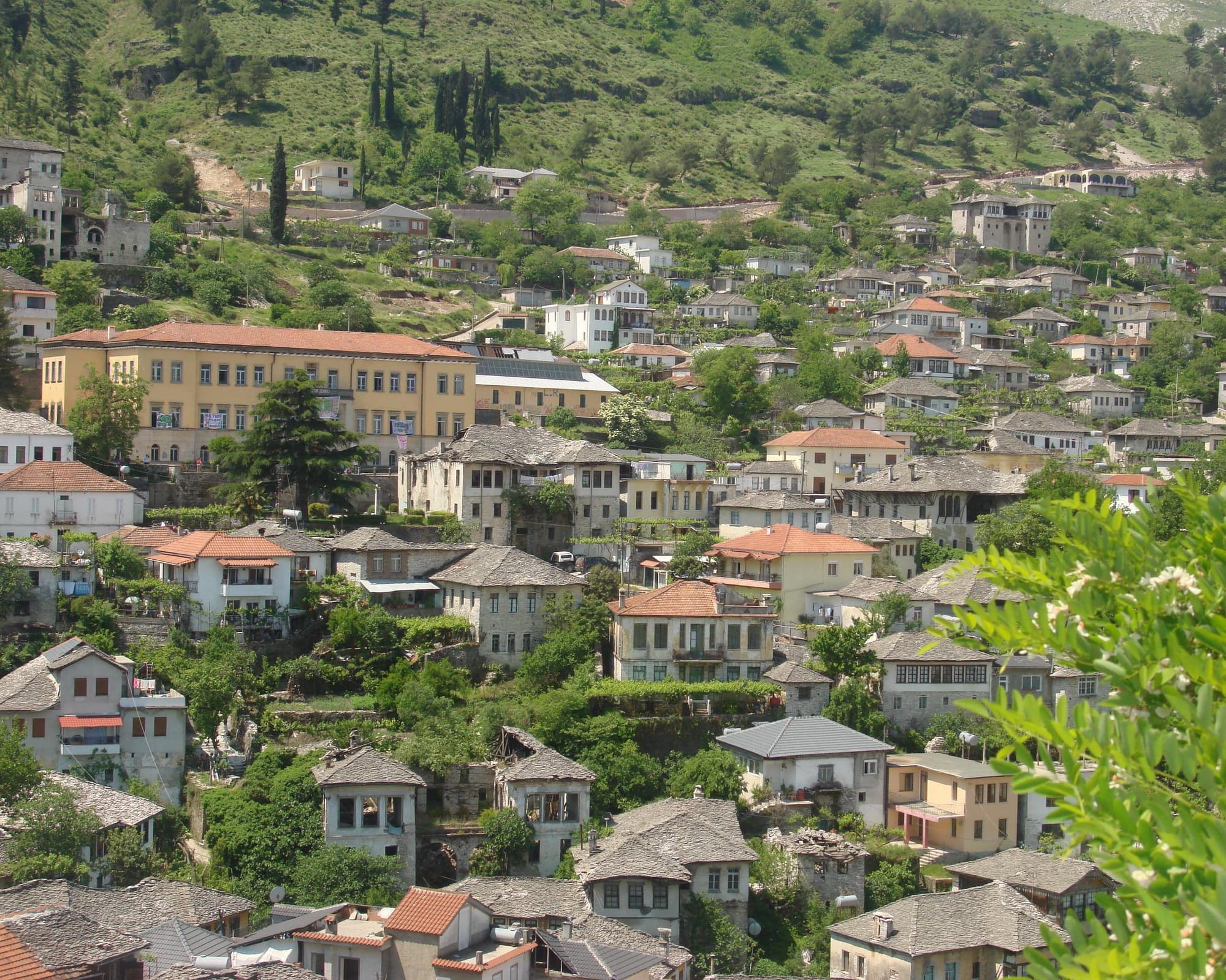Gjirokastër is a city in southern Albania, on a valley between the Gjerë mountains and the Drino, at 300 metres above sea level. Its old town is a UNESCO World Heritage Site, described as "a rare example of a well-preserved Ottoman town, built by farmers of large estate". The city is overlooked by Gjirokastër Fortress, where the Gjirokastër National Folklore Festival is held every five years. It is the birthplace of former Albanian communist leader Enver Hoxha, and author Ismail Kadare.